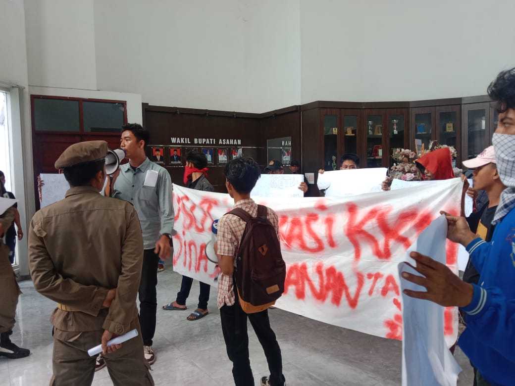 “Lapor Pak Bupati Asahan, kami datang mau melaporkan anggota Bapak Kadis Perikanan, Umar Simangunsong. Dia kami duga melakukan dugaan korupsi pengadaan kapal 5 GT dan kapal seruwai serta lainnya, ” ujar Arman Maulana kordinator aksi.