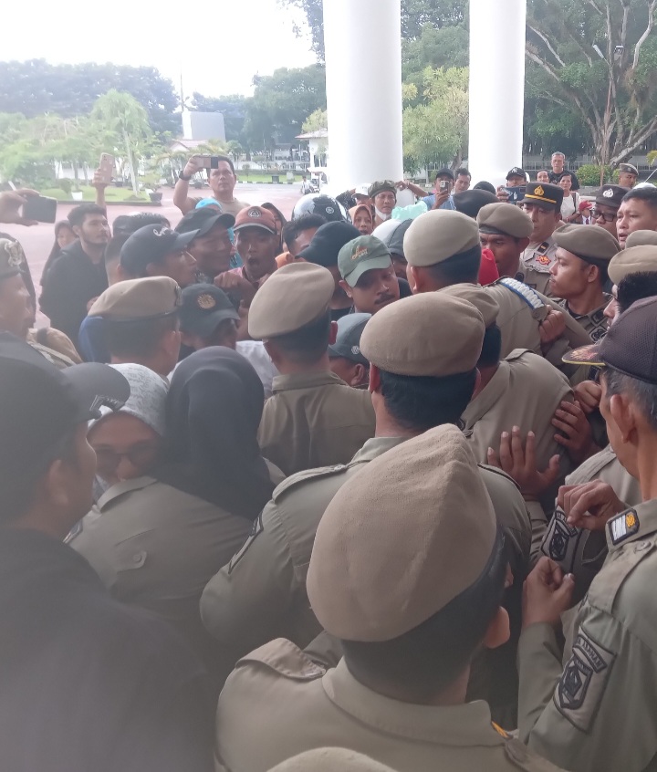 Ket Foto : Aksi Dorong-dorongan antara pengunjukrasa dan Satpol PP